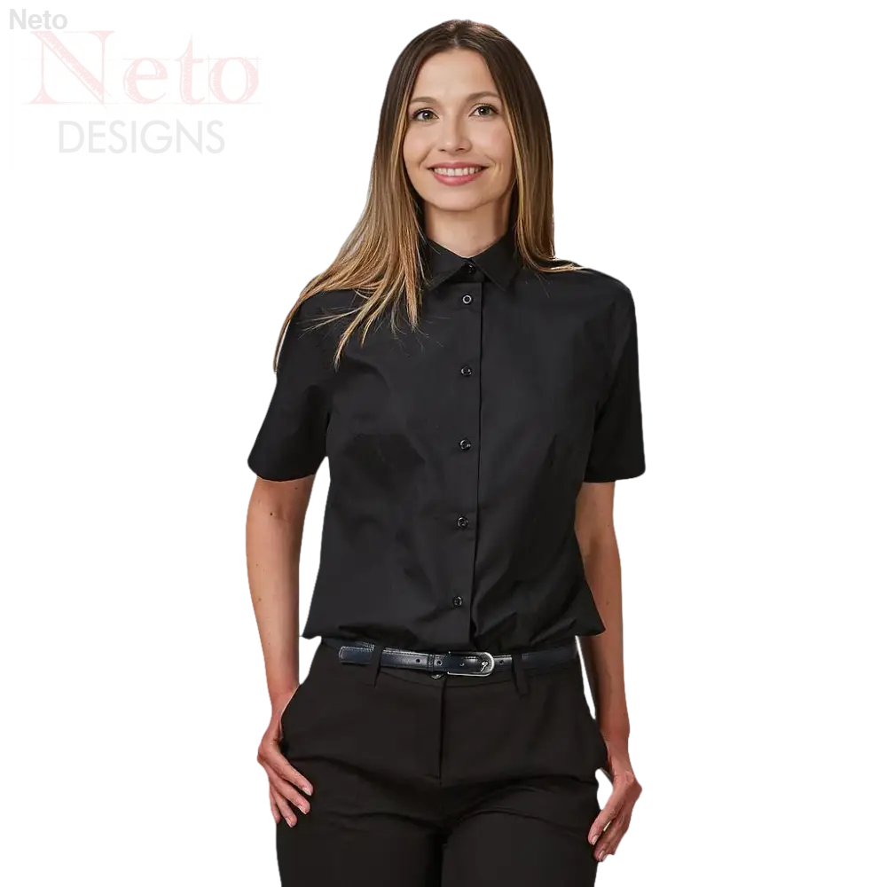 Une **chemise femme manches courtes** conçue pour exceller et se démarquer dans l'exigeant environnement de travail de l'hospitalité et au-delà. Réalisée avec une attention méticuleuse aux détails, cette **chemise femme** est disponible en blanc ou noir, offrant des options modernes et sobres qui s'adaptent à toute image d'entreprise.